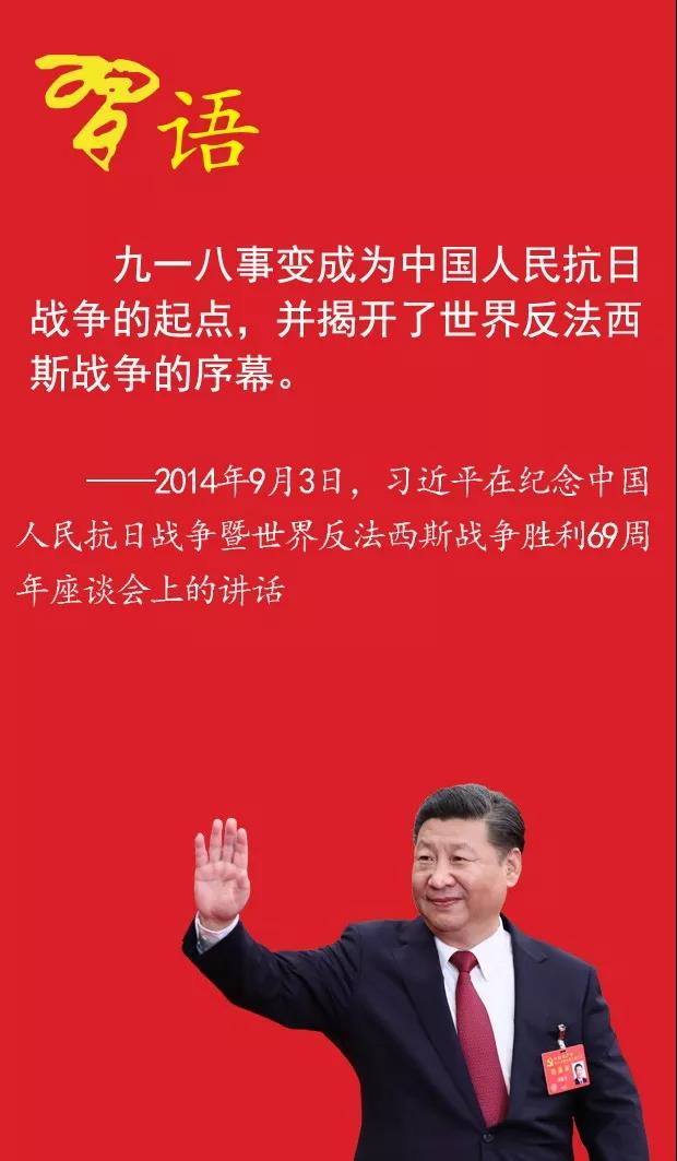 88年前的今天,日本军国主义悍然发动九一八事变,激起了中国人民的奋勇抵抗。九一八事变成为中国人民抗日战争的起点。习近平总书记曾经多次论述过抗战胜利的重大意义和弘扬抗战精神,呼吁我们要以史为鉴、珍爱和平。今天,党建网微平台和您一起回顾习近平关于抗战的部分经典论述。