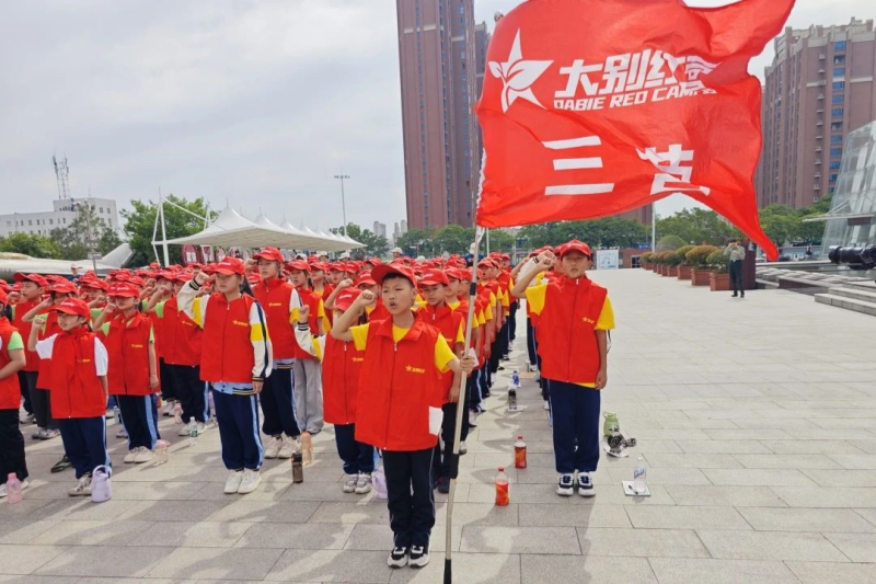 鲜红旗帜映童真,铿锵誓言启新程。同学们整齐列队,眼神坚定,郑重接过飘扬的营旗,迎着朝阳踏上充满未知与收获的研学旅程。