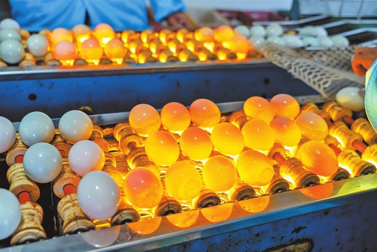光山县文殊乡弦丹禽蛋制品厂的光山麻鸭蛋。 晏荣荣 摄