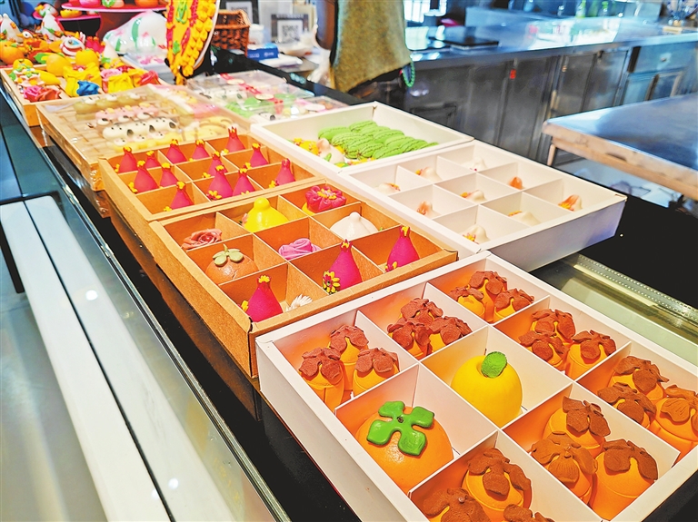 4月10日,在郑州博物馆“锦绣云霞”展厅内,孙宝菊用诗意的描述向游客讲解中国传统服饰云肩。
